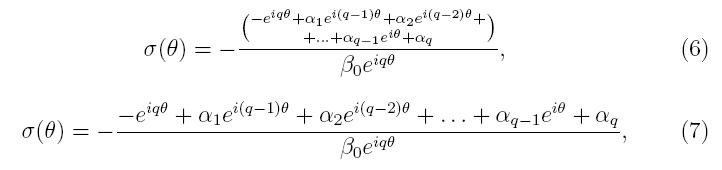 \sigma(\theta)=-\frac{- e^{i q\theta} + \alpha_1 e^{i
